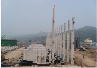 根據設計要求,焦爐氣壓縮機廠房所有水泥立柱均采用混泥土一次性預制,最后整體吊裝。每根水泥柱長約19米,重達26噸,因其水泥柱上部有不規則的牛腿,增加了吊裝難度。項目部精心組織,主導施工隊、吊裝公司、業主連同監理各方積極協調聯系,制訂了嚴密的吊裝計劃,采用160噸吊車進行主吊裝,50噸吊車同時遛尾,并配備了經驗豐富的吊裝總指揮,施工總工親自在現場進行技術支持。