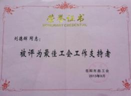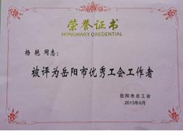 9月30日,在岳陽市總工會召開的第六屆代表大會上傳出喜訊。公司工會榮獲“岳陽市先進(jìn)基層工會”,公司黨委書記、董事長劉德輝被岳陽市總工會授予“岳陽市最佳工會工作支持者”榮譽(yù)稱號,公司楊艷被岳陽市總工會授予“岳陽市優(yōu)秀工會工作者”榮譽(yù)稱號。