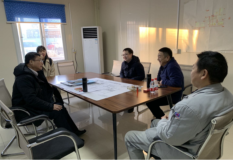 12月18日,公司黨委書記胡流芳、副總經理陳岳剛一行來到華北分公司承建的天津渤化“兩化”搬遷燒堿項目檢查指導工作。