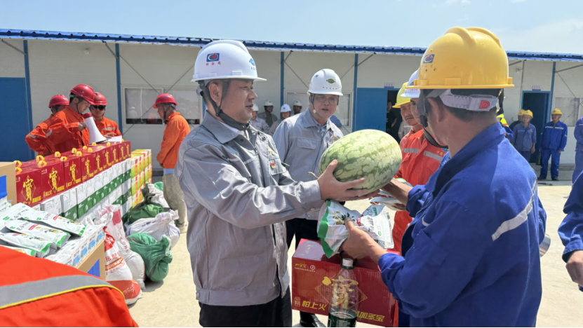 在項(xiàng)目現(xiàn)場(chǎng),張勇向奮戰(zhàn)在施工一線(xiàn)的工人致以敬意和問(wèn)候,向他們發(fā)放了礦泉水、清涼飲品、防暑藥品等慰問(wèn)物資。他強(qiáng)調(diào),安全是發(fā)展的前提,健康是幸福的基石,各級(jí)管理人員必須將員工生命安全與身體健康放在首位,壓實(shí)安全責(zé)任,強(qiáng)化現(xiàn)場(chǎng)管理,杜絕麻痹思想。工會(huì)組織要切實(shí)發(fā)揮橋梁紐帶作用,做實(shí)做細(xì)員工關(guān)懷工作,確保各項(xiàng)防暑降溫措施落地見(jiàn)效,保障人員平安度夏。