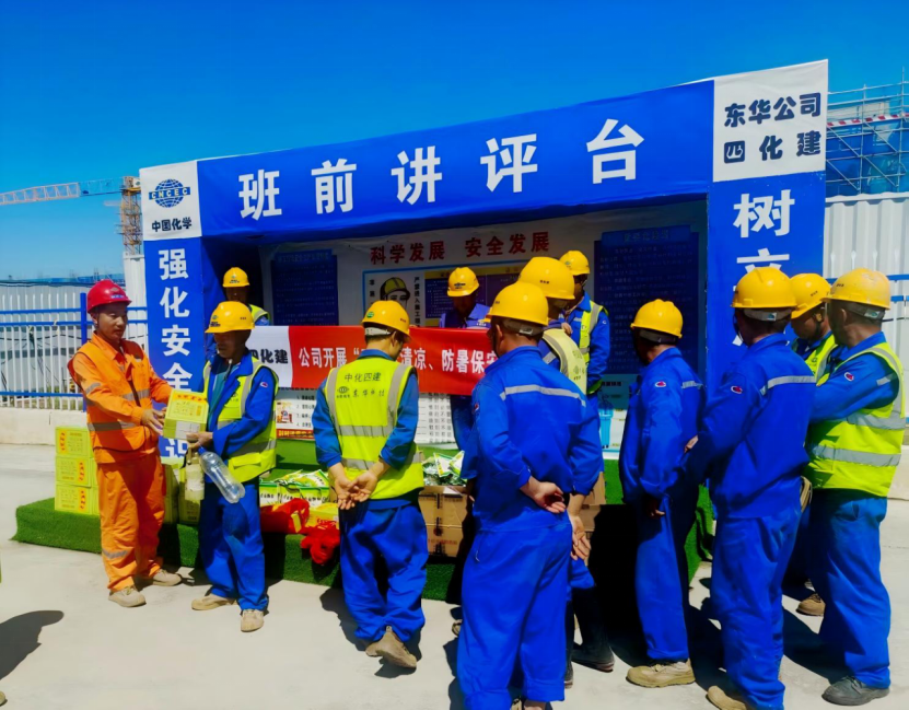 活動中,中南公司工會代表先后前往宜化保險粉、宜化燒堿、徽陽磷酸、天辰大道、宜章凱美特等項目施工現場,為堅守崗位的一線作業人員送去1000余份精心準備的防暑物資,其中既有藿香正氣水、清涼油等實用藥品包,也有鹽汽水、酸梅湯等解暑飲品。在分發防暑物資的同時,工會代表還深入開展“安全叮囑進一線”行動,結合高溫作業安全規范,向職工細致講解防暑降溫小知識和高溫時段施工注意事項,重點提醒露天作業人員合理安排休息時間、避免長時間暴曬,切實增強大家的自我防護意識。