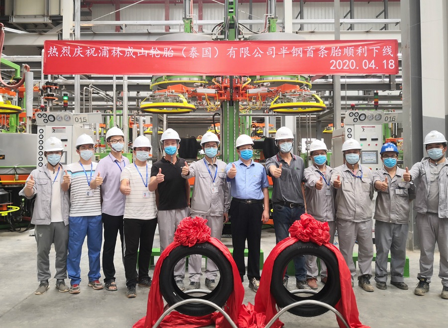 4月18日上午9點,由公司國際事業部承建的浦林成山泰國項目首條半鋼子午線輪胎順利下線。