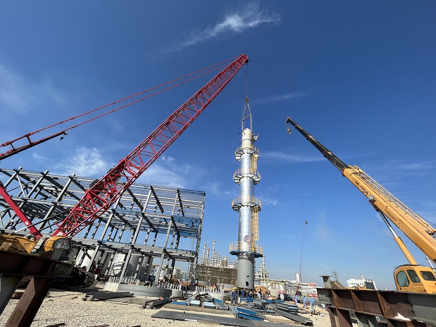 11月1日,由西部公司承建的湛江中捷新材料項目順利完成T-207精制D塔的吊裝,標(biāo)志著該項目設(shè)備安裝正式啟動。