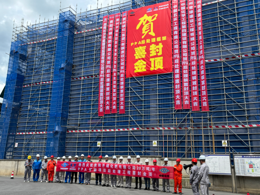 近日,由中國化學四化建華南公司承建的貴陽開磷化肥有限公司20萬噸/年PPA擴能項目后處理工程主裝置順利封頂,標志著項目正式進入安裝施工階段。